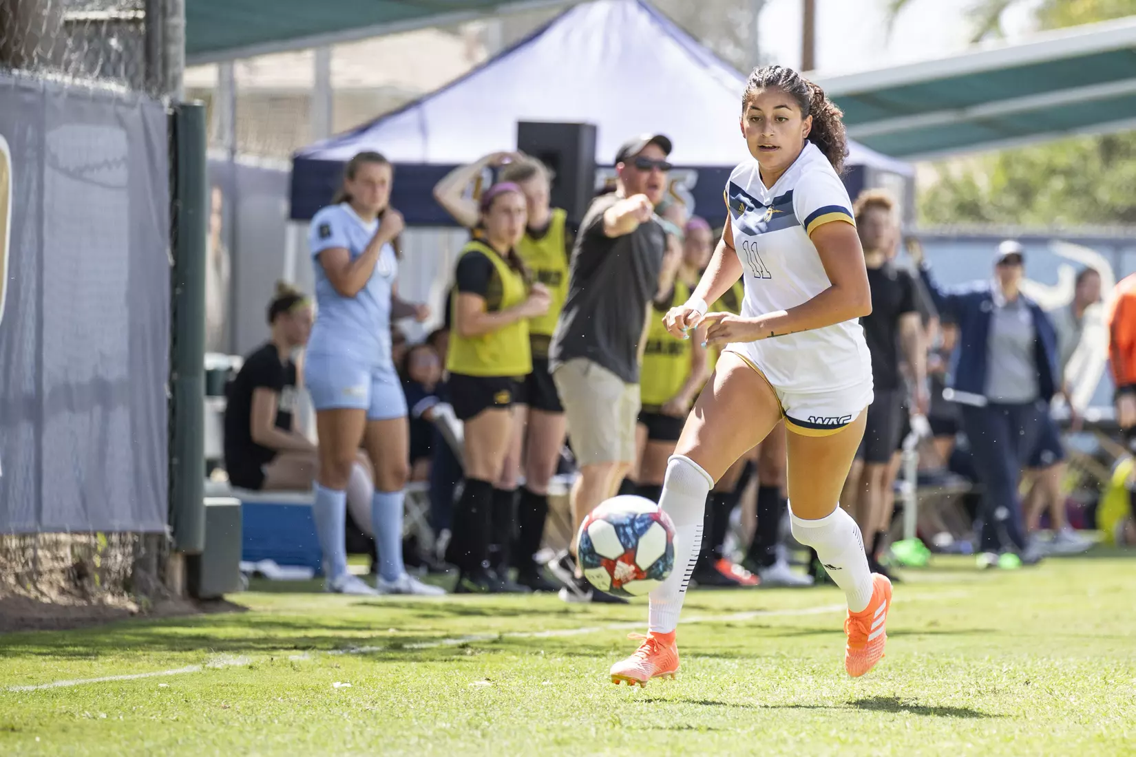 CBU had its breakthrough moment with nine minutes left in the first half, as Vanessa Evans checked into the game, and immediately found Ari Coronado on the far side. Coronado did well to shake her defender and hit a fabulous strike over the keeper's head.