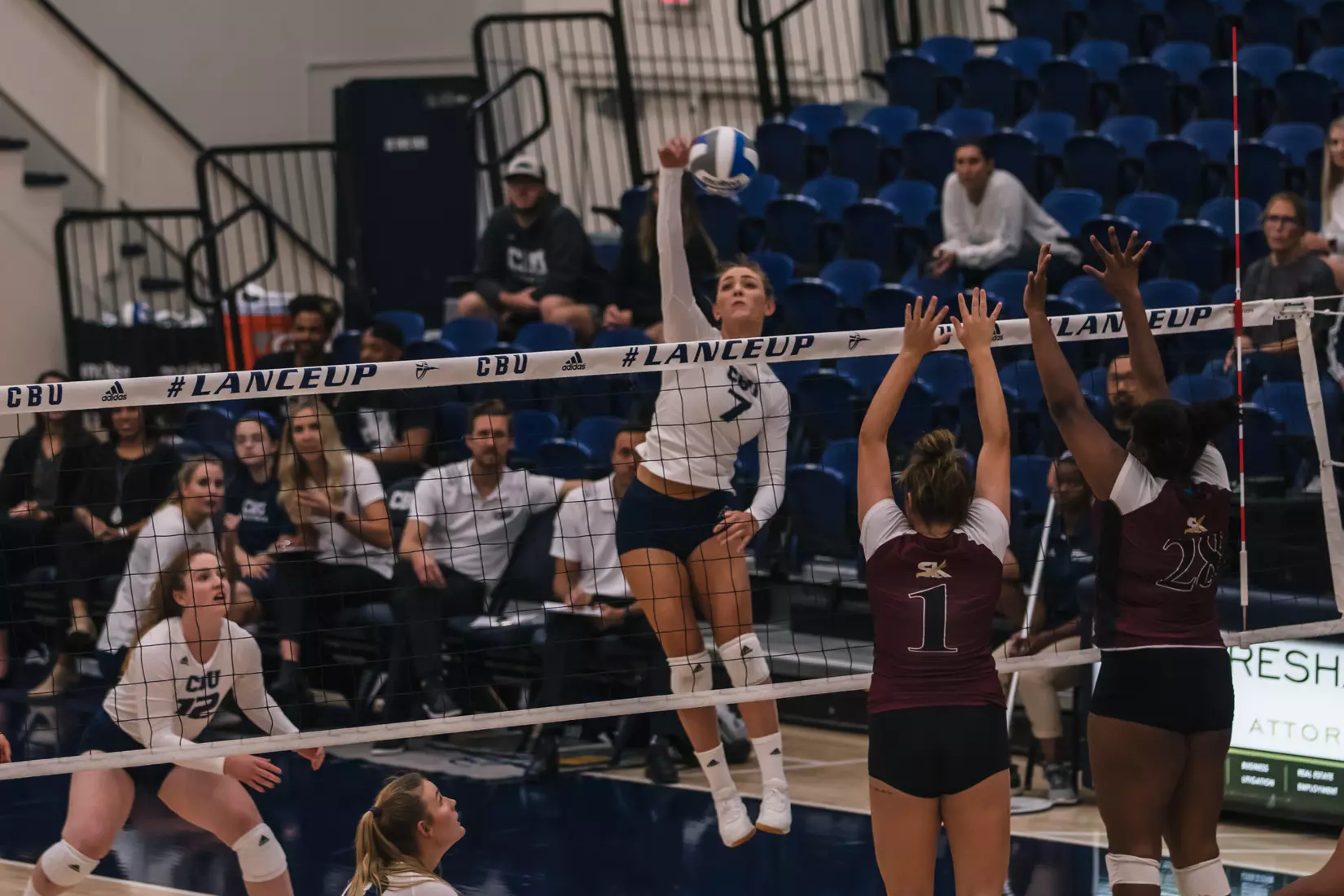 A 12-2 advantage in aces helped the Lancers keep the USK out of its offense and to a negative .128 hitting percentage (9-19-78) in a 25-14, 25-11, 25-12 victory. Carissa Rivette led CBU's attack from the service line, with a match-high six aces.
